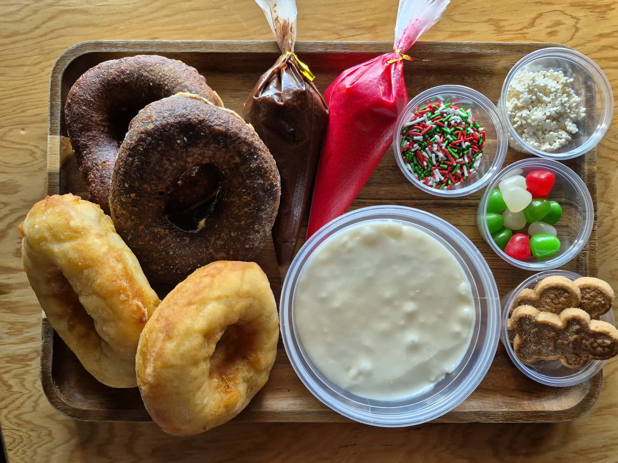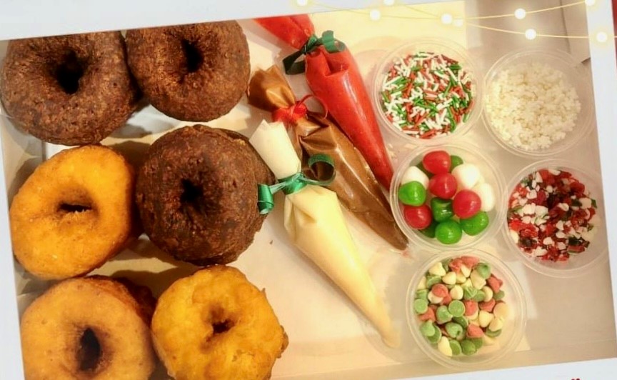 Notre boîte «Décore tes Beignes à la maison» – Édition de Noël contient tout ce qu’il faut pour t’amuser (et te régaler!) :